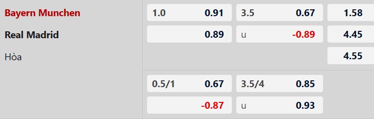 Thông tin tỷ lệ kèo bóng đá Bayern Munich vs Real Madrid: