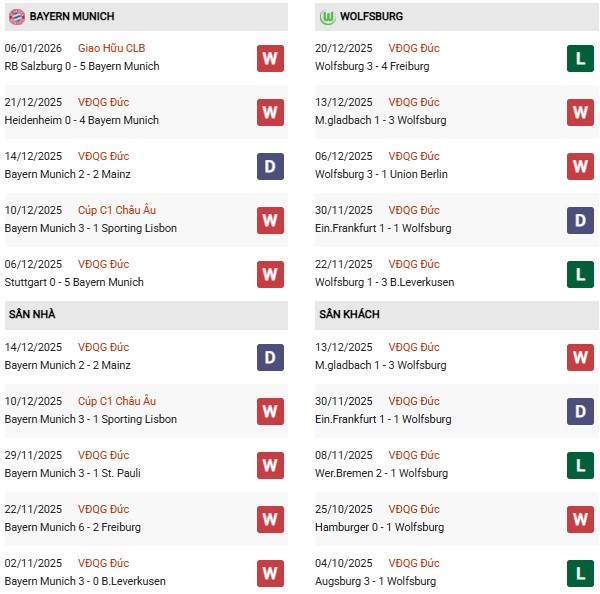 Thống kê phong độ Bayern Munich vs Wolfsburg: