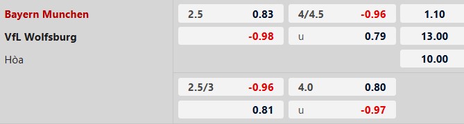 Soi kèo châu Á Bayern Munich vs Wolfsburg: