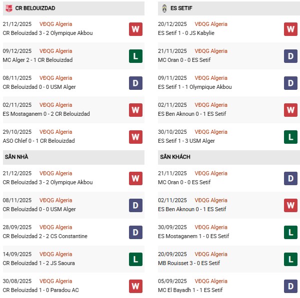 - Trên sân nhà, Belouizdad thắng 6, hòa 4 trước ES Setif.