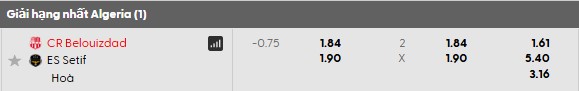 Thông tin tỷ lệ bóng đá Belouizdad vs ES Setif: