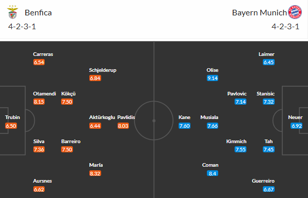 Đội hình dự kiến Benfica vs Bayern Munich: