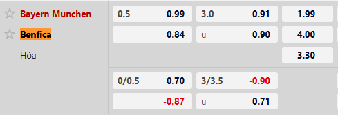 Thông tin tỷ lệ kèo bóng đá Benfica vs Bayern Munich: