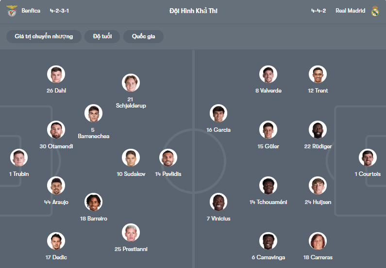 Benfica không phải là đối thủ để Real Madrid có thể giỡn mặt. Bằng chứng là ở lần đối đầu gần đây nhất giữa 2 đội tại vòng phân hạng UEFA Champions League, Benfica đã nghiền nát đội bóng thủ đô Madrid với tỉ số đậm 4-2, bất chấp sự tỏa sáng của tiền đạo Kylian Mbappe với 1 cú đúp.