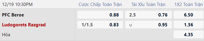 Thông tin tỷ lệ Beroe vs Ludogorets: