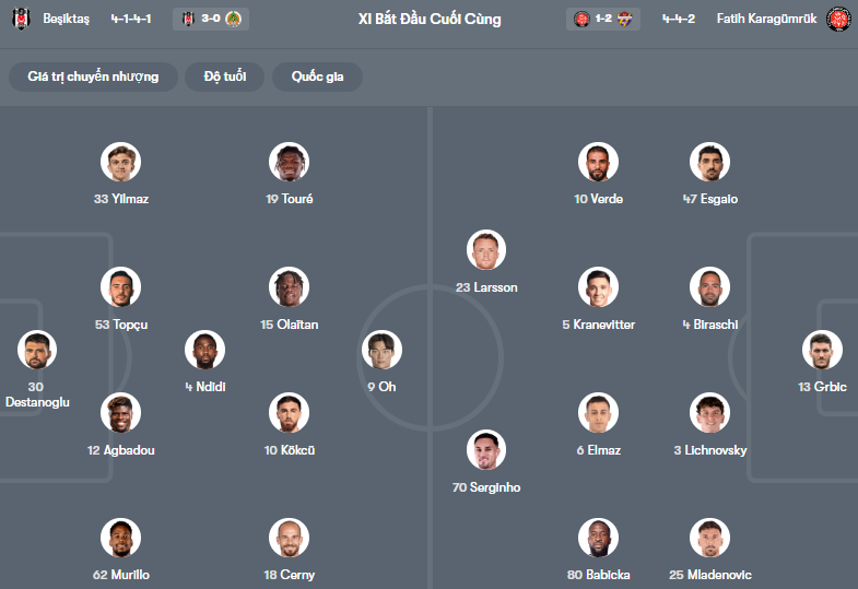 Đội hình dự kiến Besiktas vs Karagumruk: