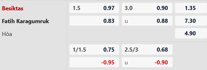 Thông tin tỷ lệ kèo Besiktas vs Karagumruk: