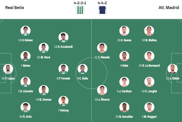 Đội hình dự kiến Betis vs Atletico Madrid: