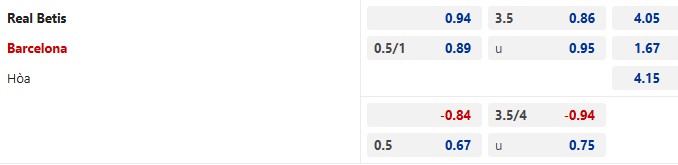 Thông tin tỷ lệ kèo bóng đá Betis vs Barcelona: