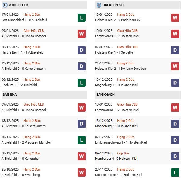 Thống kê phong độ Bielefeld vs Holstein Kiel: