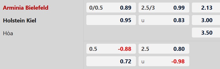 Tỷ số lẻ: 6/8 trận gần đây giữa Holstein Kiel và Arminia Bielefeld đều kết thúc với tỷ số lẻ. 4/6 trận gần nhất của Arminia Bielefeld số bàn thắng cũng không chia hết được cho 2.