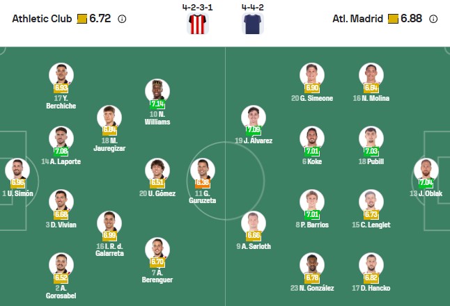 Đội hình dự kiến Bilbao vs Atletico Madrid: