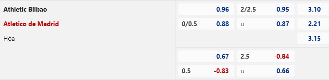 Thông tin tỷ lệ kèo bóng đá Bilbao vs Atletico Madrid: