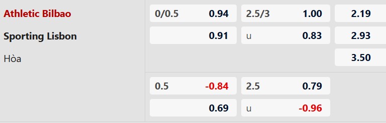 Thông tin tỷ lệ kèo Bilbao vs Sporting Lisbon: