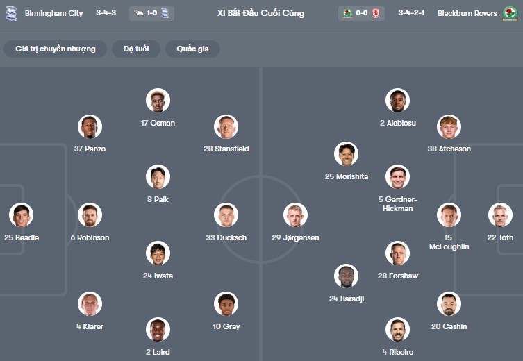 Đội hình dự kiến Birmingham vs Blackburn:
