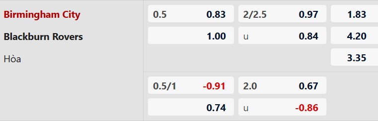Thông tin tỷ lệ kèo Birmingham vs Blackburn: