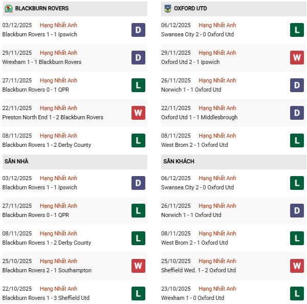 - Blackburn thắng 4, thua 1 trong 5 trận gặp Oxford gần đây.