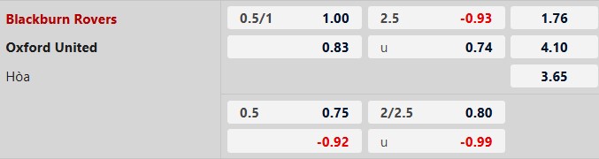 Thông tin tỷ lệ bóng đá Blackburn vs Oxford: