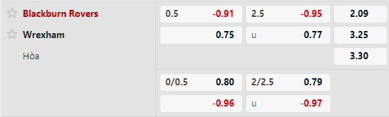 Thông tin tỷ lệ kèo Blackburn vs Wrexham: