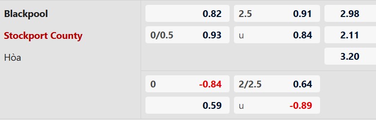 Soi kèo châu Á Blackpool vs Stockport: