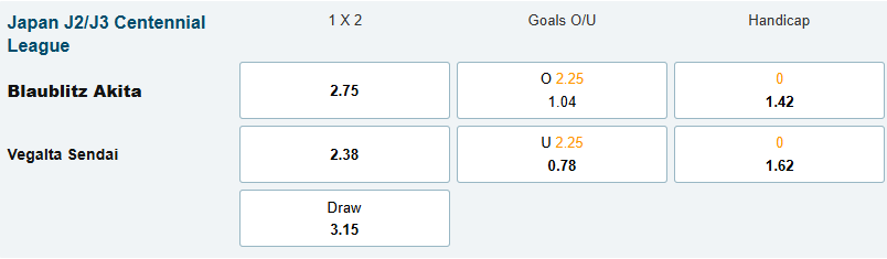 Thông tin tỷ lệ cược Blaublitz vs Vegalta Sendai: