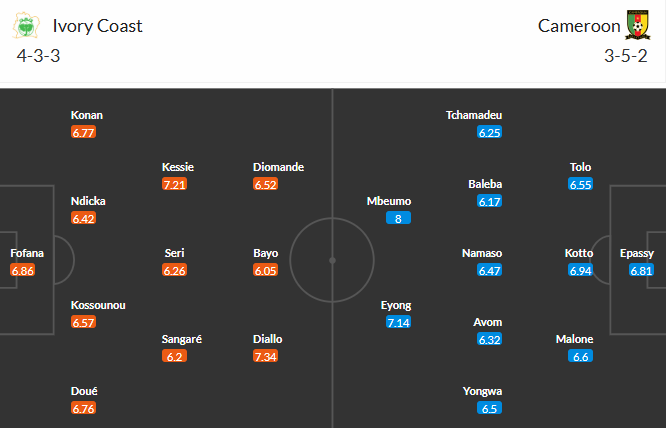 Đội hình dự kiến Bờ Biển Ngà vs Cameroon: