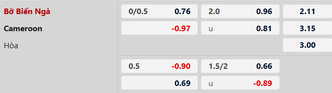 Tổng bàn thắng lẻ: 4/5 trận gần đây của Bờ Biển Ngà kết thúc với tỷ số lẻ. 4/6 trận gần nhất của Cameroon cũng có số bàn thắng không chia hết cho 2.