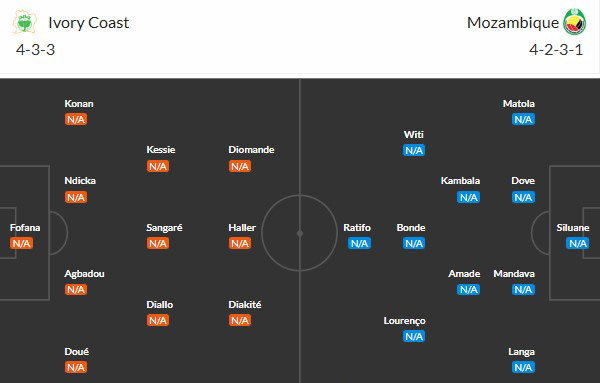 Đội hình dự kiến Bờ Biển Ngà vs Mozambique: