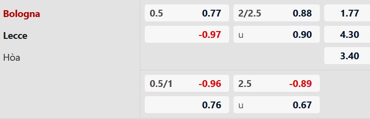 Thông tin tỷ lệ kèo Bologna vs Lecce: