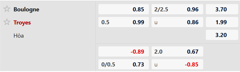 Thông tin tỷ lệ kèo Boulogne vs Troyes: