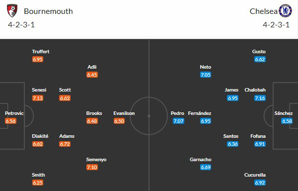 Số liệu thống kê về Bournemouth gặp Chelsea: