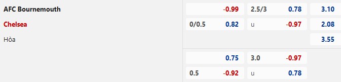 Thông tin tỷ lệ kèo bóng đá Bournemouth vs Chelsea: