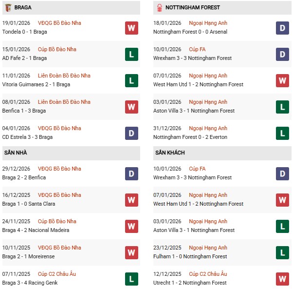 Thống kê phong độ Braga vs Nottingham: