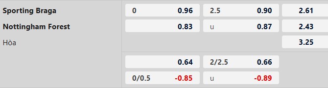 Nhận định kèo tài xỉu Braga vs Nottingham: