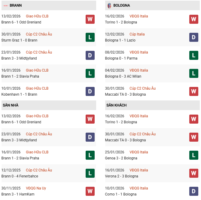 Bản lĩnh của "Rossoblu": Dưới thời Vincenzo Italiano, Bologna chơi rất kỷ luật và thực dụng trên sân khách. Họ đã thắng 3/4 trận sân khách gần nhất tại đấu trường châu Âu mùa này.