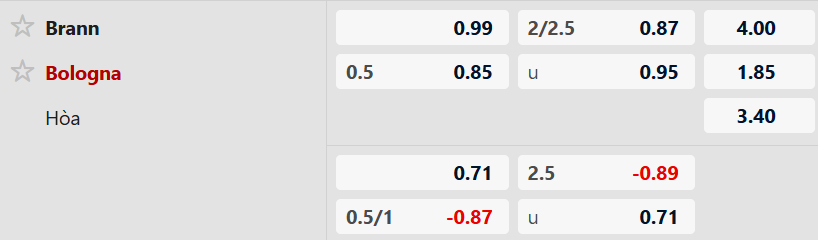 Thông tin tỷ lệ kèo Brann vs Bologna: