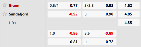 Thông tin tỷ lệ Brann vs Sandefjord: