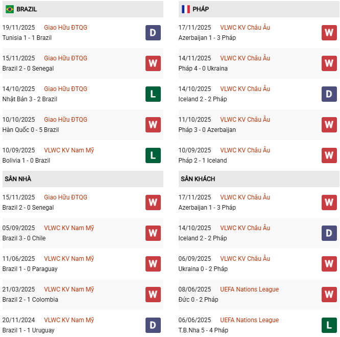 So với Brazil, phong độ của Pháp tốt hơn rất nhiều. Les Bleus của Didier Deschamps bất bại ở 7 trận gần nhất, trong đó có 6 chiến thắng và 1 trận hòa. Do đó, ĐT Pháp rất muốn duy trì mạch trận bất bại này bằng một kết quả khả quan trước đối thủ quen thuộc Selecao, đồng thời san bằng thành tích với họ.