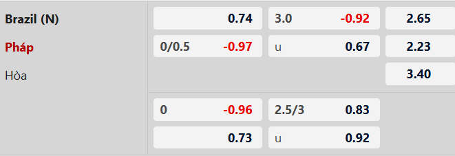 Thông tin tỷ lệ kèo bóng đá Brazil vs Pháp:
