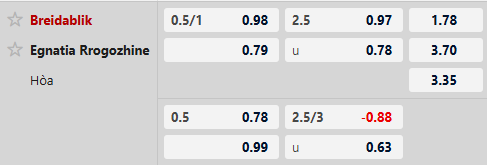 5 trận sân nhà liên tiếp tại các cúp châu Âu, Breidablik không thể giữ sạch lưới và 4 trong số đó sau cùng khép lại với trên 2 tình huống lập công. Trong khi đó, Egnatia chỉ tịt ngòi đúng 1/8 lần ra sân mới đây trên mọi giải đấu. Ngoài ra đã 7 màn tiếp khách, Breidablik đều bị chọc thủng lưới. Dĩ nhiên cuộc đấu mà khả năng cao bàn thắng xuất hiện cả hai đầu thì kết cục rất dễ hấp dẫn.