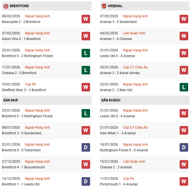 Chuỗi thành tích đó bao gồm chiến thắng 3-1 tại sân Gtech Community vào ngày đầu năm mới 2025, trước khi Arsenal tiếp tục hạ gục đội bóng của HLV Keith Andrews với tỉ số 2-0 vào tháng 12, kéo dài mạch bất bại trước đối thủ này lên con số 8.