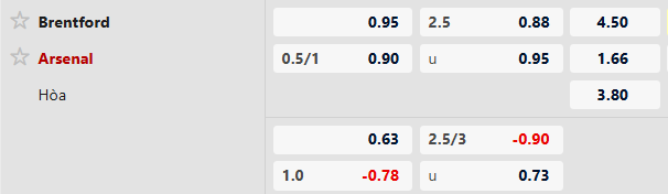 Thông tin tỷ lệ kèo Brentford vs Arsenal: