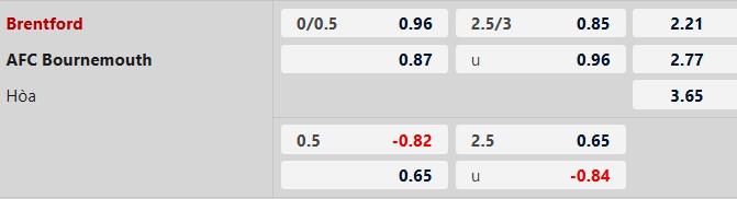 Thông tin tỷ lệ kèo Brentford vs Bournemouth: