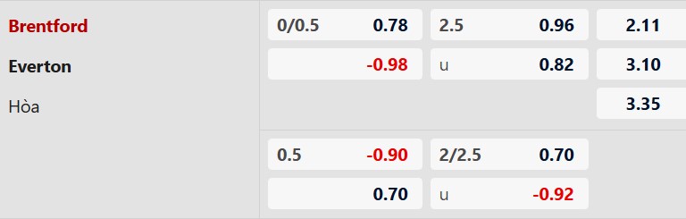 Thông tin tỷ lệ bóng đá Brentford vs Everton: