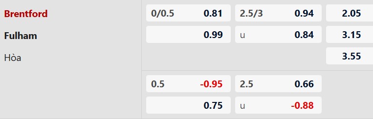 Thông tin tỷ lệ bóng đá Brentford vs Fulham:
