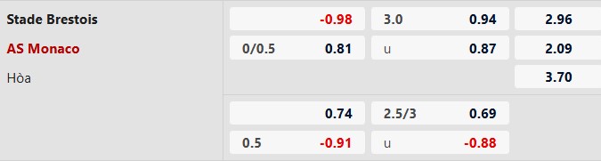 Soi kèo châu Á Brest vs Monaco: