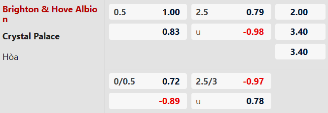 Soi kèo châu Á Brighton vs Crystal Palace: