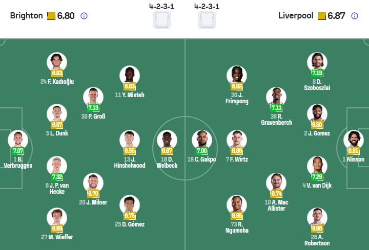 Đội hình dự kiến Brighton vs Liverpool: