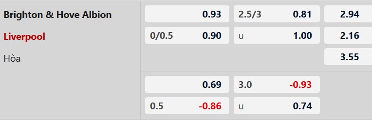 Soi kèo châu Á Brighton vs Liverpool: