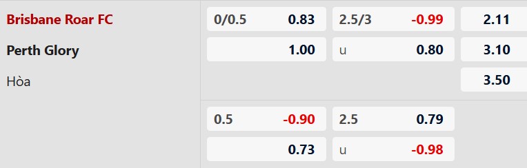 Thông tin tỷ lệ Brisbane Roar vs Perth Glory: